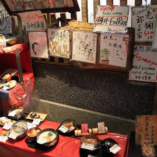 从伏见稻荷大社出来右转第一个街口就可以看见祢ざめ家,这家餐厅以烤鳗鱼出名,人气很旺。祢ざめ家有百年历史,还是丰臣秀吉的御用膳食,不过相比其他的料理价钱稍高。