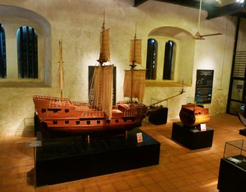 斑驳的黄色墙壁和红色屋顶的两层建筑里陈列了大量海下发掘出来的文物、地图、船只、绳索、陶器、酒杯、烟袋和火炮。这些文物大多来自南部海岸外海的沉船,较精致的文物大部分来自中国,有些有近八百年的历史。除了陈列这些文物之外,还有些关于加勒历史、海底生物介绍等等。
