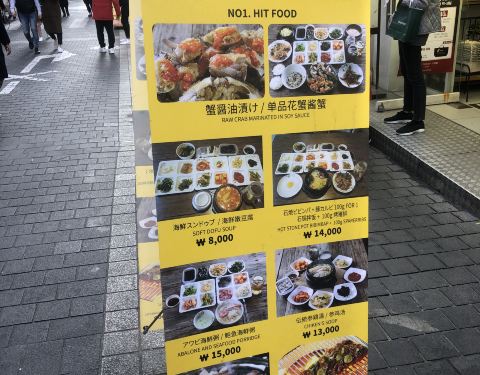 位置很便利~就在韩国旅游必去的明洞~和line friend在一条街上~进店之后看到墙上有很多大明星的签名和照片~应该是很有名的店没错啦~和朋友一起点了一个酱蟹的套餐~有酱蟹~有汤有饭~小菜也很丰富~还有鸡蛋...