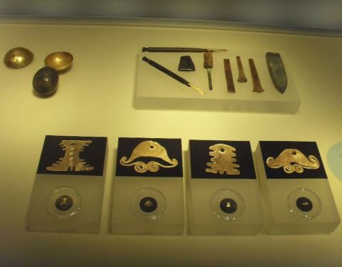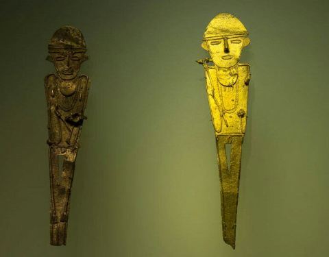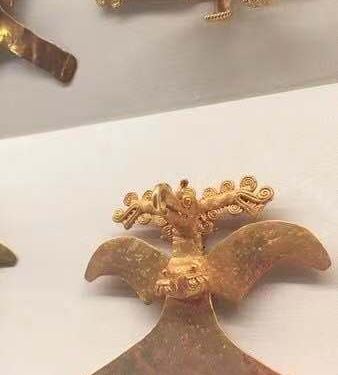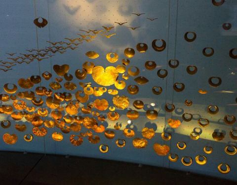 黄金博物馆里的展品都是印第安人东躲西藏才得以保存下来的黄金博物馆里的展品都是印第安人东躲西藏才得以保存下来的。这些珍贵的艺术品,大多是用微薄如纸的金箔、细如发丝的金线制作的,每件金器上都带有一定含义的形象和图案。