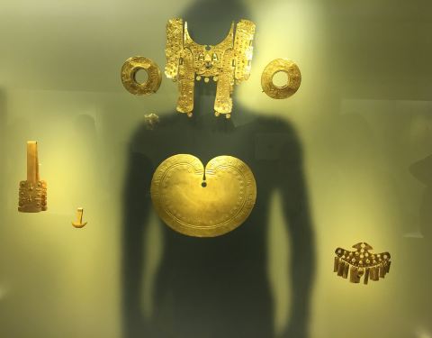 所以这边的黄金博物馆还是做得相当不错的。 里面的灯光会比较昏暗,所以也映衬的黄金比较漂亮就在哥伦比亚的首都,因为哥伦比亚这边之前也是在黄金这边的产量很高。所以这边的黄金博物馆还是做得相当不错的。 里面的灯光会比较昏暗,所以也映衬的黄金比较漂亮。
