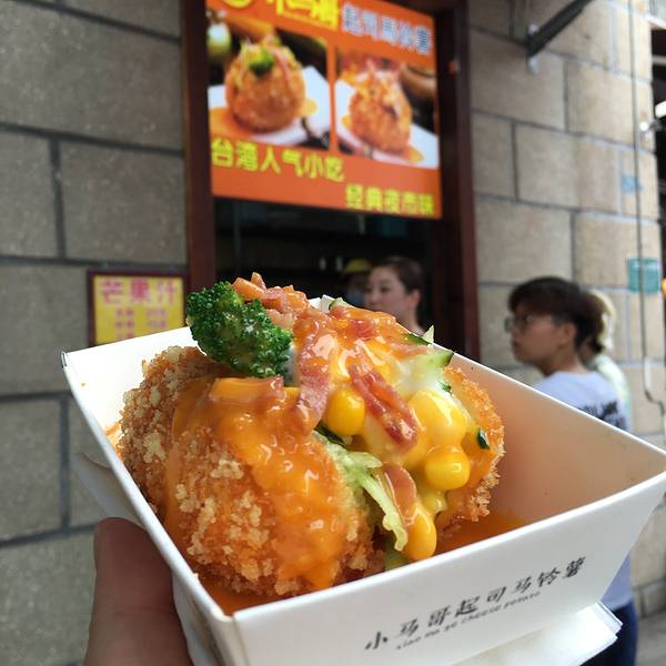 龙头路是鼓浪屿一条著名的商业街,集中各种餐饮和礼品商铺。但讲真,品质没有物价高。叶氏麻糍,类似我们成都糍粑,这里十元十个,很香很糯,还算值得推荐!肠粉,我在广州小吃中的最爱。在鼓浪屿要排队二三十分钟才能吃上,味道比不上广州随便哪个小店。鲨鱼丸,天知道是什么鱼做的,反正味道平平,也不会想吃第二次。梅老板,一碗沙茶面¥45,这个物价简直正点!除了花生汤比较香浓以外,其吃的都很一般,不过环境和服务还算不错。从隔壁打包过来的“小马哥芝士马铃薯”,这是我在鼓浪屿唯一吃到满意的小吃,来自台湾,每时每刻店家前都排着长龙!晚上又去排了半小时,还抱着小诺,美了胃和嘴,苦了腰和腿!张三疯奶茶,商业炒作的典范。几乎每个游客都会慕名前去,但又是那种不去遗憾,去了后悔的地方。十五元一支的冰棍,好看不好吃。满岛都是各种手工饼手工糖作坊,包装都很精致,做伴手礼还不错,满多少数额还可以包邮。要在茫茫食海中找到适合自己的,实属不易!