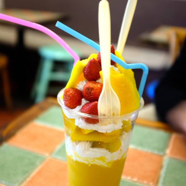 上了年纪的胖叔没走两步又要歇息吃东西了!点了一杯芒果巨无霸~厦门的芒果真甜。