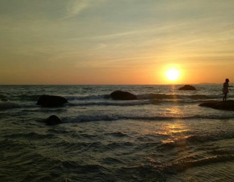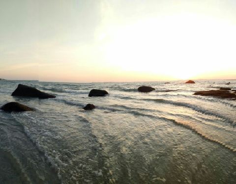 日落很美,海也算干净,不过不是那种蓝蓝的