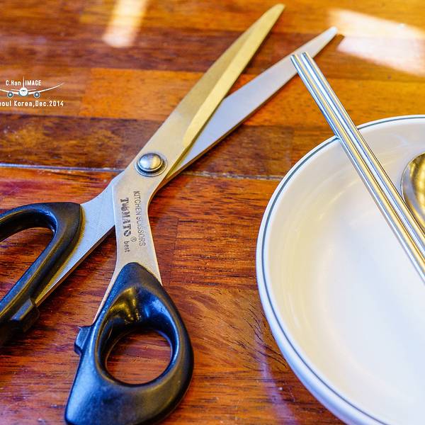 原来韩国人吃饭前都是要先剪彩的,吃个东西真是隆重。 【元祖安东炖鸡】也算是明洞有名的