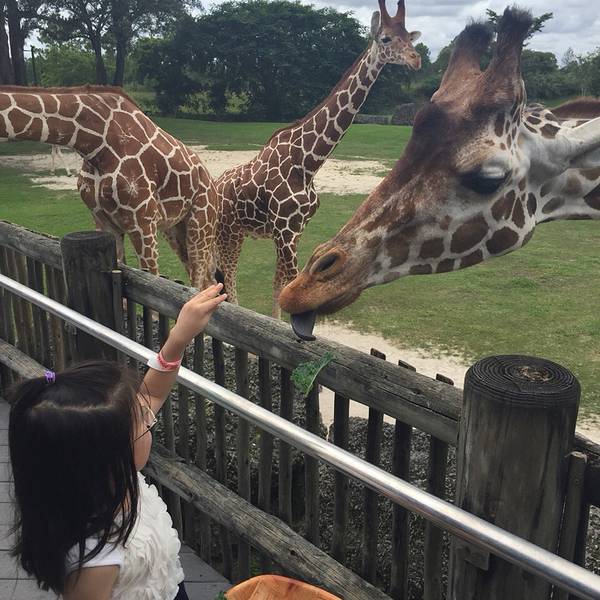 动物园里首先推荐喂长颈鹿,开放时间11点到下午4点,建议上午去,长颈鹿比较活跃。喂食需要买特定食物,我们买了一份snack 3.5刀和一份meal 11刀,其实就是小份青菜和大份青菜。长颈鹿的大黑舌头可以申的老长,卷着吃青菜,还会舔到你的手,非常有意思。其次推荐就是喂鹦鹉,鸟食1.5刀一份,鸟园里面控制人数,每次允许10人左右喂10分钟。鹦鹉会落在人手上吃,还会飞到人的后背或书包上吃食。这是今天闺女最喜欢的项目。有的时候依依不舍。儿童动物园里可以和骆驼和羊近距离接触。可以给羊刷毛,但是不能摸它的角或拍打它,也不能在小动物园里跑。闺女给一头白色的小羊刷了半天毛,特别有爱。 展开