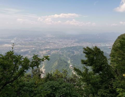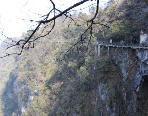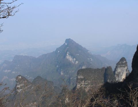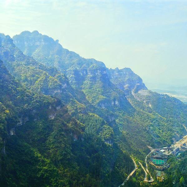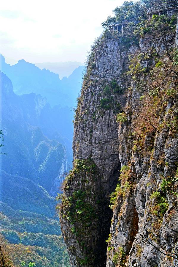 这是天门山下了索道后上山途中一个比较好的观景台。从这里可以远眺天门寺的建筑。天门寺从唐代就有,现在的天门寺位置是明代定下来的。