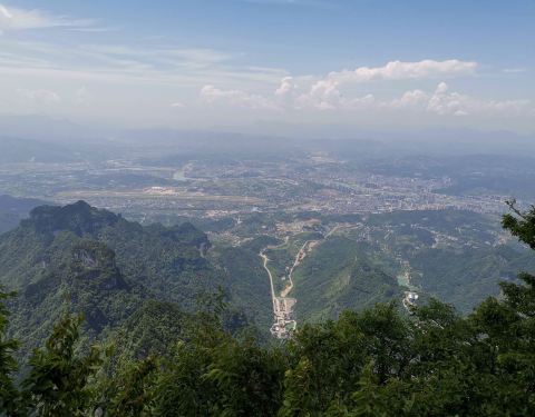 索道下来后盘山游玩的最高点,在这里可以俯视整个天门山景区,运气好的时候还可以看见飞人的飞行衣,...