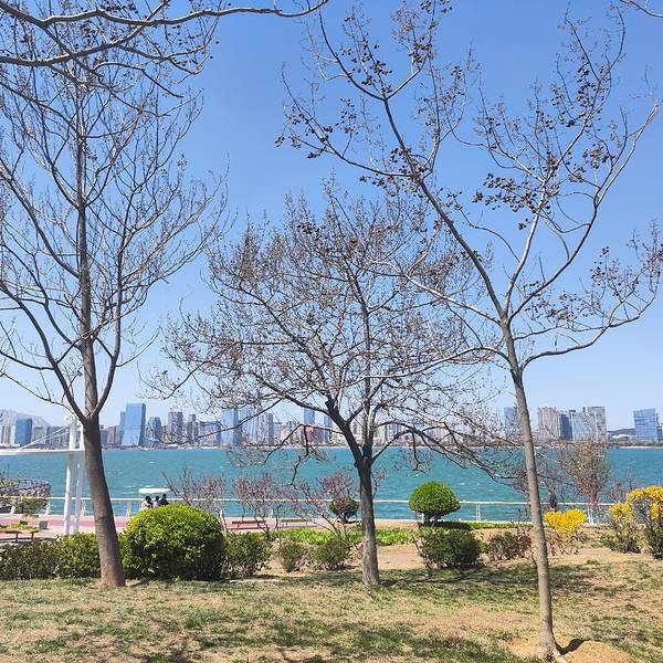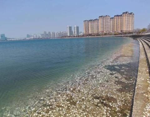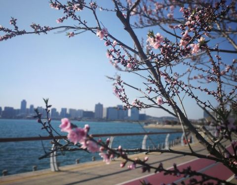 春季可賞花,很美的海濱公園,值得一遊。 公交可達喔唐島湾濱海濕地公園,雖称溼地卻沒有一般想像中的濕地,沒有芦葦沒有蝦、蟹小動物沒有濕地沙灘,只有乾淨石頭滩、高樓,猛一看像香港~ 春季可賞花,很美的海濱公園,值得一遊。 公交可達喔~