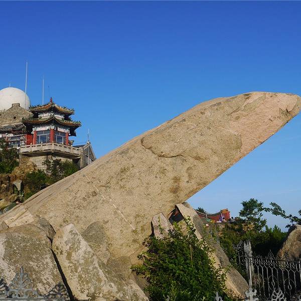 石长6.5米,是泰山标志之一,也是登岱观日出的好地方在玉皇顶东侧的日观峰上,有一巨石向北斜上横出,名为“拱北石”,因其形犹如起身探海,故又名“探海石”。石长6.5米,是泰山标志之一,也是登岱观日出的好地方。