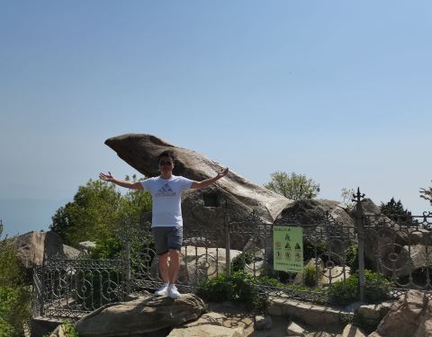 石长6.5米,是泰山标志之一,也是登岱观日出的好地方。苍茫海气连云动,石上游人别有情“才听天鸡报晓声,扶桑旭日已初明。苍茫海气连云动,石上游人别有情。” 在东岳泰山玉皇顶东侧的日观峰上,有一巨石向北斜上横出,名为“拱北石”,因其形犹如起身探海,故又名“探海石”。 石长6.5米,是泰山标...“才听天鸡报晓声,扶桑旭日已初明。苍茫海气连云动,石上游人别有情。” 在东岳泰山玉皇顶东侧的日观峰上,有一巨石向北斜上横出,名为“拱北石”,因其形犹如起身探海,故又名“探海石”。 石长6.5米,是泰山标志之一,也是登岱观日出的好地方。 港版《八仙过海》曾在此处取景,饰演吕洞宾的帅哥是潘志文😄。 展开