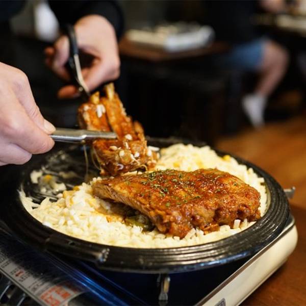 韩国近年来人气激增的芝士排骨,总店在弘大,明洞也有了分店。对于芝士控来说,绝对不能错过!满满的可拉丝的芝士与酱排骨的完美搭配,让人垂涎。另外还要推荐紫菜拌饭,添加了吞拿鱼和沙拉的米饭,要自己用手搅拌,充分融合后,那叫一个美味。