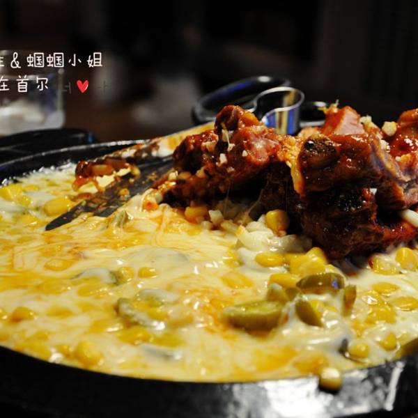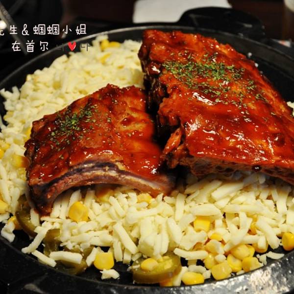 睡醒觅食,还是要尝试一下各大帖子都推荐的吃饭地儿,詹姆斯芝士排骨,到的是弘大这家店。推荐指数:5颗星