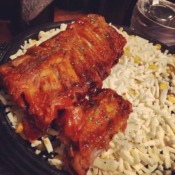 ...芝士融化后,用芝士把排骨包裹起来吃,芝士浓郁的香气混搭肋排经典的口感,很独特创新的吃法,赞爆了
