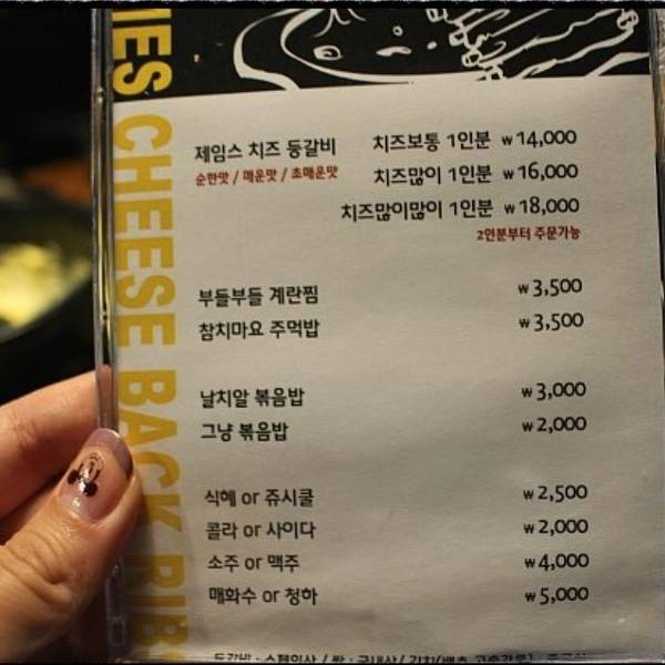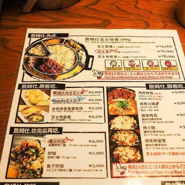 你们知道韩国的詹姆士芝士排骨哪家最正宗吗? 当然是弘大本店了!价格分别是1万4、1万6、1万8一人份