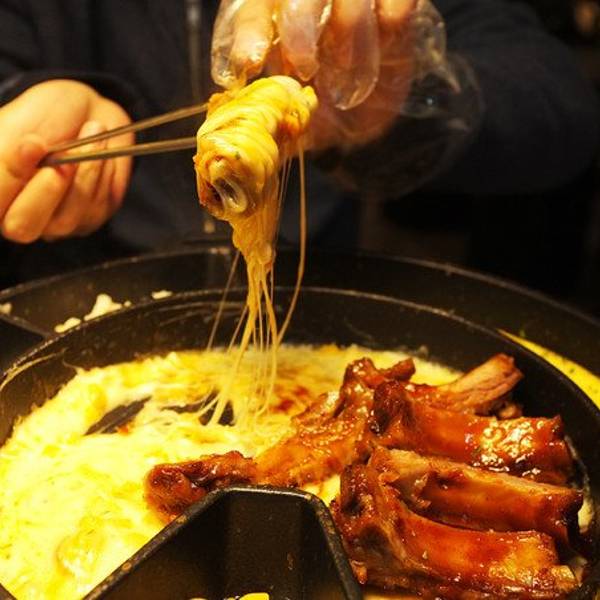 韩国近年来人气激增的芝士排骨,总店在弘大,明洞也有了分店。对于芝士控来说,绝对不能错过