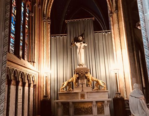 教堂的尖顶在波尔多老城的景色中占据主导地位。这里有一座很棒的哥特式教堂值得来一场短途游这里有一座很棒的哥特式教堂值得来一场短途游。这里没有那些著名的教堂大,比如说巴黎的巴黎圣母院,但是它更有亲密感。对我来说最棒的地方就是大的玫瑰窗,还有入口处精致雕刻的拱门。教堂的尖顶在波尔多老城的...这里有一座很棒的哥特式教堂值得来一场短途游。这里没有那些著名的教堂大,比如说巴黎的巴黎圣母院,但是它更有亲密感。对我来说最棒的地方就是大的玫瑰窗,还有入口处精致雕刻的拱门。教堂的尖顶在波尔多老城的景色中占据主导地位。教堂的开放时间有限,是免费的,但是在教堂里面有一个小的博物馆,开放的时间更有限,并且还要收取少许的入场费。我们很高兴有机会看到这个小型的收藏展,有画作,雕塑等等。 展开