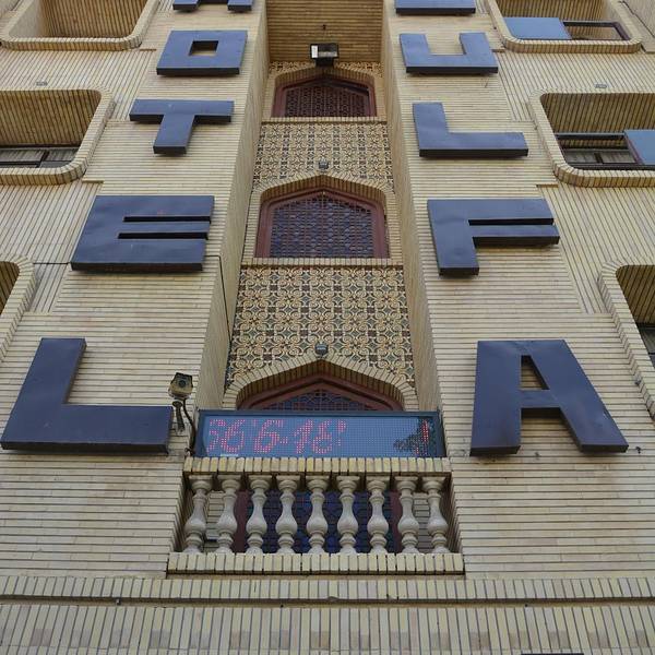 午饭在LP推荐的Khan Gostar Restaurant里解决,位于Jolfa Hotel一楼。值得推荐的是在餐厅旁边的小卖部里面,可以买到各种精美的伊朗邮票,可选的邮票种类特别多,面值小到1000R,大到20000R都有,比之后去过任何一家邮局的种类要多得多,喜欢收集邮票的,或者想要寄邮票给朋友的人不要忘了在这里买。由于寄回国内要21000RIAL,我喜欢将3、4张面值加起来有21000R的邮票贴在上面,所以别人收到的明信片有一大块空间是给我的邮票占据的。Jolfa Hotel还有一个方便的地方就是酒店外的小亭子可以叫车,而且去城郊的琐罗亚斯德教遗址只需要15K一辆车,价格很划算。