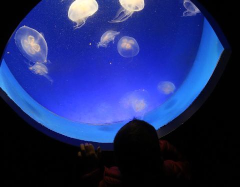 摸鲨鱼、看水母装置、欣赏各种美丽奇异的海洋生物。
