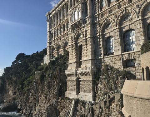 摩纳哥市内的摩纳哥海洋地理博物馆,建于1910年,是对海洋学极其狂热的阿尔伯特一世亲王所建造的,起初便是作为艺术科技馆来设计的。馆内收藏了各种美丽奇异的鱼类,以及来自各大洲的、各式各样的、光怪陆离的海洋动物,还有些潜水设备和模型船等。海洋生物学家JCousteau在此设有研究中心。 新修建的“鲨鱼暗礁”是一个450立方米的巨型池子,其中有五颜六色的珊瑚礁,并生活着种类繁多的海洋生物。 从门面到室内装饰,整座博物馆的建筑风格无一不体现出浓郁的海洋气息。自1910年3月29日开放以来,这座6000多平方米的海洋天堂已在海外声名远播。游客在这座仅高于海平面85米的博物馆里,可以欣赏到6000多种海洋生物,该地也早已成为一所文化交流中心,供人们交流人类共同遗产——海洋保护经验。 从水族馆到自然历史展品系列,从鲨鱼馆到全景露台上的海龟岛,博物馆为游客提供了一个学会如何认识、热爱及保护海洋的机会。 创始人曾希望博物馆“集人类文明两大力量艺术与科技于一身”,因此馆内也举办大型当代艺术展,如达明·赫斯特(Damien Hirst)、黄永平、马克·迪翁(Mark Dion)或马克·奎安(Marc Quinn)等大师的作品展。
