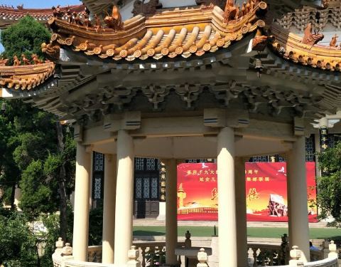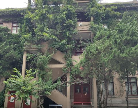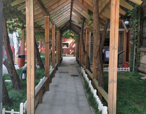 路过参观,平时会有画展路过参观,平时会有画展。里面的建筑墙上爬满了爬山虎,还有院中的小亭子上的屋檐也很有特色,古香古色,加上参天大树,拍照很美!