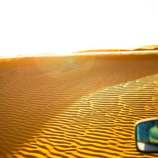 气喘吁吁来到顶上,前方的地平线已露微光,随着时间的推移,它慢慢从温暖、柔软的光晕,一点一点变为瑰丽的光芒,直射向四面八方。沙漠在 日光 的照耀下展现出迷离的光影变化,我们先下去洗漱,吃了早餐,又继续回来抓紧每分每秒拍个够,最后员工过来催促我们赶快准备离开,才急忙回帐篷用最快的速度打包行李。老板开着四驱车带我们走出沙漠,当地人就是有这种本事,在没有任何标志物的广袤沙漠里,熟门熟路地就能找到正确的方向。我们问老板是怎么辨别东南 西北 的,他开玩笑道他的脑子就是一个GPS。回到驿站,住在另一个营地的小伙伴们过了半个多小时才到,所以明明刚才还可以在沙漠里多拍一会儿照片的嘛! 展开