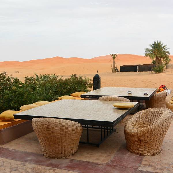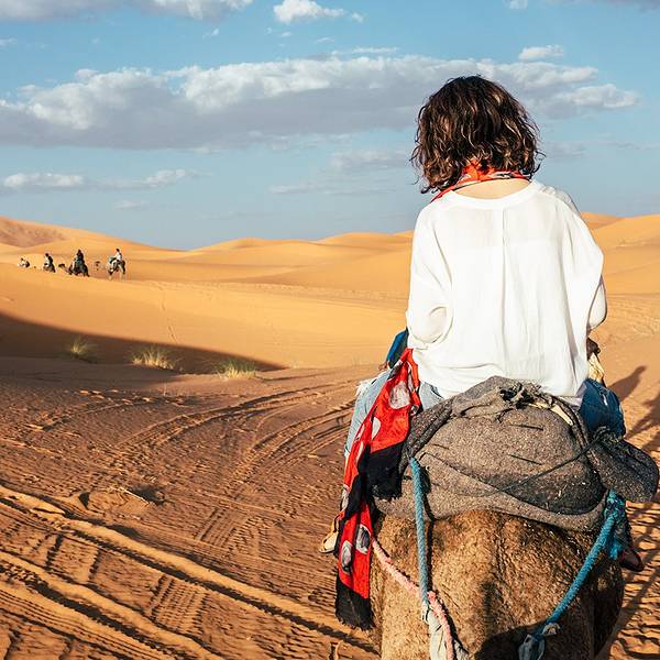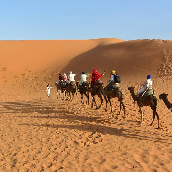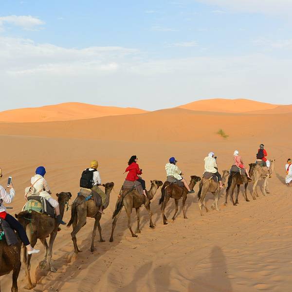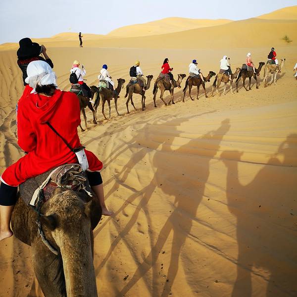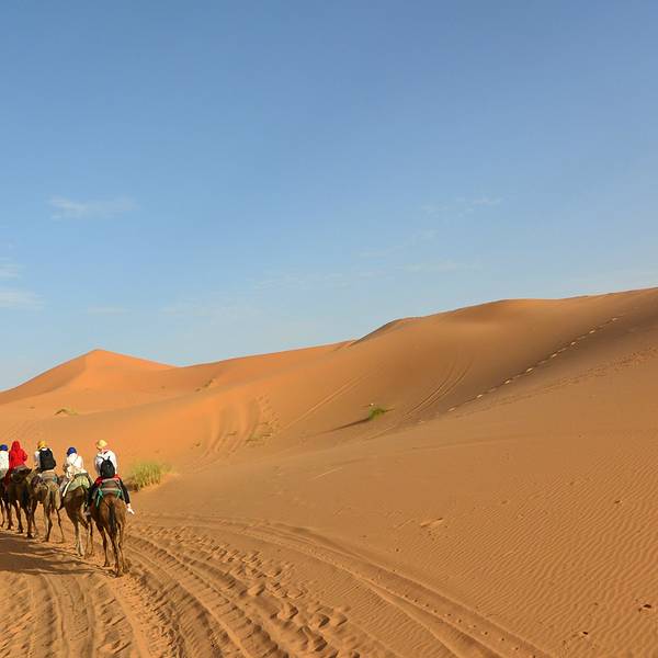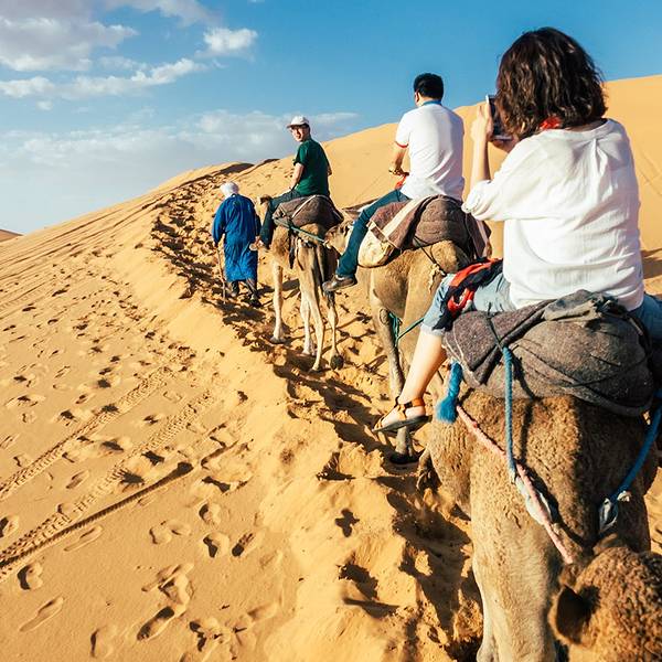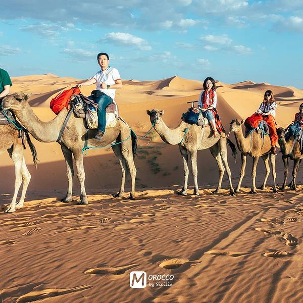 日出日落会有不同的美景,成为了摩洛哥境内独特的大漠风光,更成为无数人梦中的撒哈拉途中享用午餐,随后继续前进,傍晚抵达著名的撒哈拉沙漠大门【梅祖卡】,换乘4*4越野车进入沙漠。这里的撒哈拉是独一无二的,以形态各异的沙丘闻名,更因为它会随着自然光线的变化,展现出金色、粉色等不同的美丽...途中享用午餐,随后继续前进,傍晚抵达著名的撒哈拉沙漠大门【梅祖卡】,换乘4*4越野车进入沙漠。这里的撒哈拉是独一无二的,以形态各异的沙丘闻名,更因为它会随着自然光线的变化,展现出金色、粉色等不同的美丽色泽。日出日落会有不同的美景,成为了摩洛哥境内独特的大漠风光,更成为无数人梦中的撒哈拉!在这里将看到非洲最高的沙丘(红沙),它还是电影《阿拉伯的劳伦斯》的拍摄地之一。
