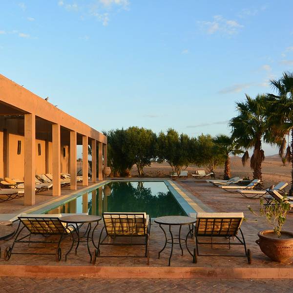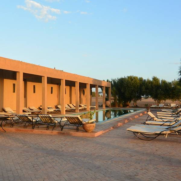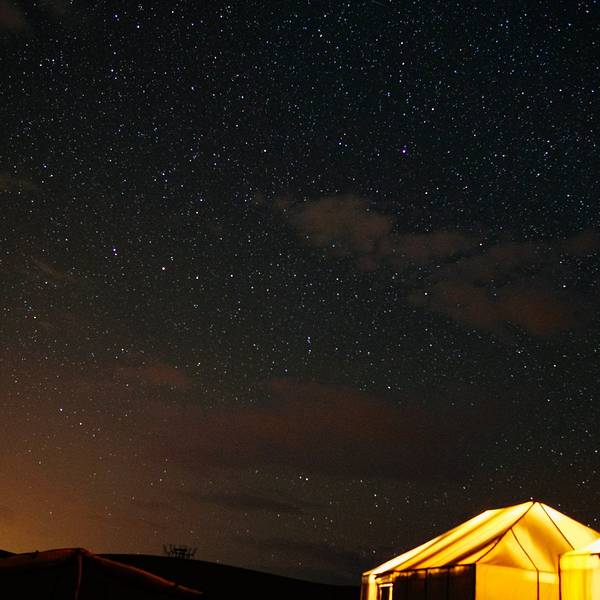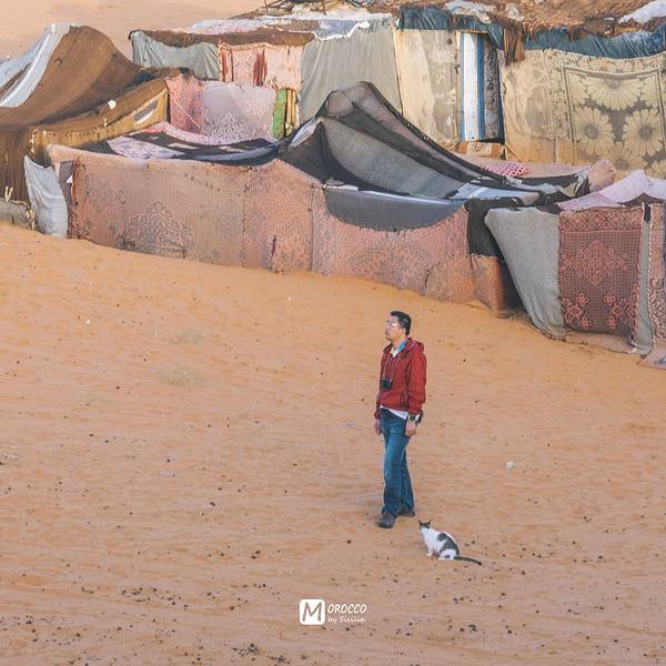我们选择的夜巴不能直达,需要离小镇几十公里的 Rissani 转车,巴士站外有拉客的出租车司机,有个男子跟我们说他在梅尔祖卡有个很漂亮的营地,已经接待过很多中国游客,可以开车带我们去看看,如果不喜欢可以不住的。