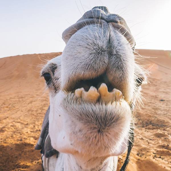 沙漠还是纹丝不动,与我幻想的漫天黄沙举步维艰的场景大相径庭。骆驼并没有想象中难骑,行径在沙丘之间,景色并不开阔。“待会儿我们一定要爬上那个最高的沙丘去看日落”!然而,抵达营地时,太阳已经完全埋入了地平线,少了暖色的光,沙漠暗淡失色。