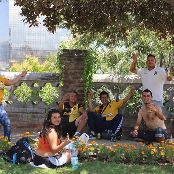 在山顶,我们喝了一种圣地亚哥很流行的饮料,当地人叫做MOTE CON HUESILLO顺着奥希金斯大街往东北走,便能看到一座绿树成荫的小山,这里就圣卢西亚山,一条弯弯曲曲的山路盘旋而上,直通山顶,满山都是形态各异的仙人掌,我在山路上不小心碰到了一株仙人掌,它的刺立马深深扎进了我的肉...顺着奥希金斯大街往东北走,便能看到一座绿树成荫的小山,这里就圣卢西亚山,一条弯弯曲曲的山路盘旋而上,直通山顶,满山都是形态各异的仙人掌,我在山路上不小心碰到了一株仙人掌,它的刺立马深深扎进了我的肉里。拔了半天才清理干净。山丘西侧设有电梯,偷懒的我们直接乘电梯来到了半山腰。山腰有一处石泉,泉水缓缓从造型优美的石雕顽童怀抱的罐子中流淌出来,在郁郁葱葱的林木中形成一滩碧水,山岗上的古堡,铜炮也都保存相当完好。 展开