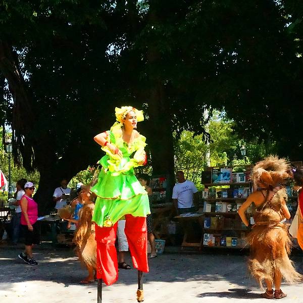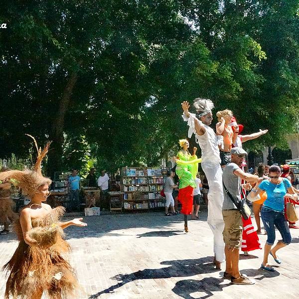 这时外面武器广场上一阵喧嚣,一群踩着高跷穿着奇装异服的演员在外面唱歌跳舞,一些游客也加入一起舞动起来这时外面武器广场上一阵喧嚣,一群踩着高跷穿着奇装异服的演员在外面唱歌跳舞,一些游客也加入一起舞动起来,好不欢快!他们一边跳一边向游客收小费,我们没过去,远远地拍了些照片便离开。