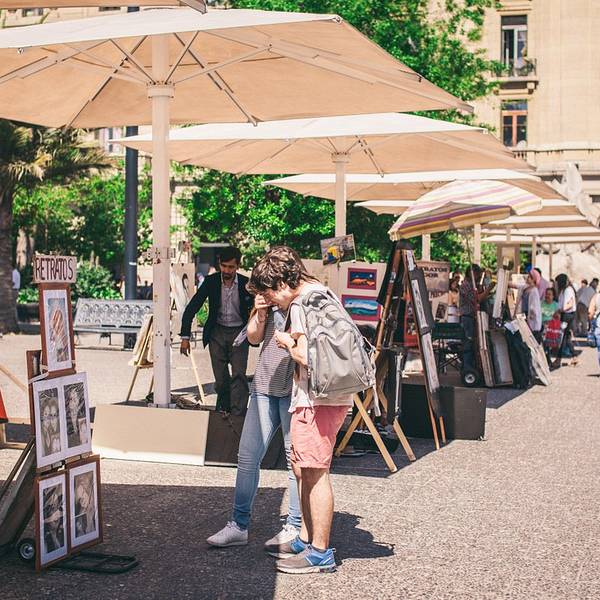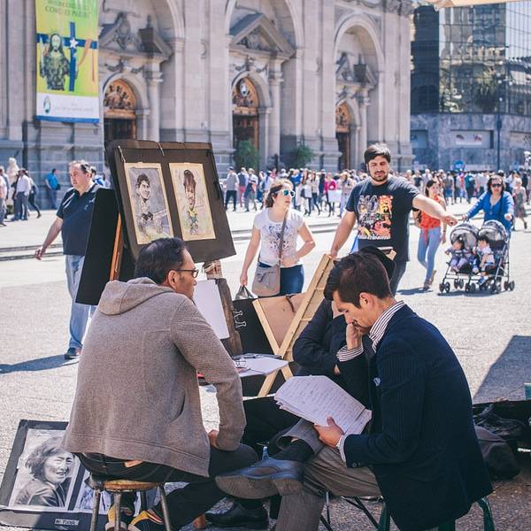 拿了签证,似乎我就完成了圣地亚哥使命,再看一眼还有数日才是离开的日子,瞬间日子变得轻松自然起来。去武器广场很方便,走出住处,钻进最近的地铁站,用不了几分钟我就到了武器广场,午后阳光灿烂炫目,不算巨大的广场上坐满了休憩的人们,广场通道上画师们早已摆成长龙,写实抽象各显神通。