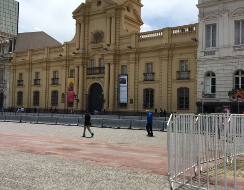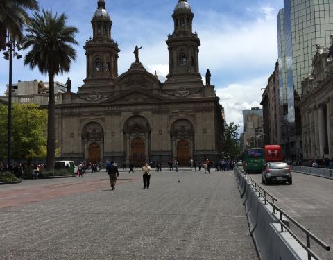智利首都圣地亚哥的武器广场,去之前看攻略说的有点恐怖,说有暴乱,小偷,抢劫之类的,所以非常谨慎...智利首都圣地亚哥的武器广场,去之前看攻略说的有点恐怖,说有暴乱,小偷,抢劫之类的,所以非常谨慎,说手机,相机都不可以露出来,搞得我们人心慌慌的,到了那里真的就是手机不敢拿出来,看到教堂很漂亮,拿出...智利首都圣地亚哥的武器广场,去之前看攻略说的有点恐怖,说有暴乱,小偷,抢劫之类的,所以非常谨慎,说手机,相机都不可以露出来,搞得我们人心慌慌的,到了那里真的就是手机不敢拿出来,看到教堂很漂亮,拿出来拍了一张就赶紧收口袋里了。后来我们进了教堂,在广场绕了一圈,感觉也没象网络上写的那么可怕吧!然后看到旁边博物馆的阳台有人在上面,我们也进去了,博物馆是免费的,但是包包要寄存,要用貌似一元的硬币可以自己存储物柜的那种,走到楼上有一间是可以爬到顶楼那个钟楼的阳台上的,但是需要等候好像大约20分钟里面的人可以带一批上去,一次大约6个人,因为楼梯很窄只能一个人过,到了上面就可以拍最后那张俯瞰教堂的图片,感觉不错。 展开