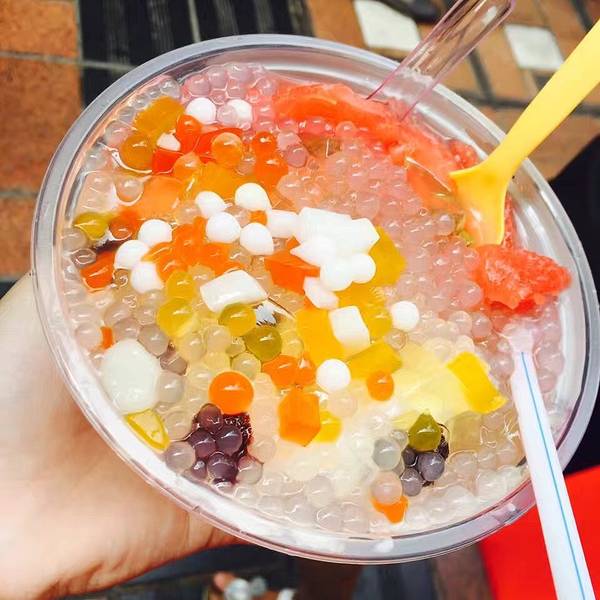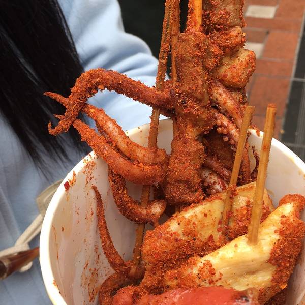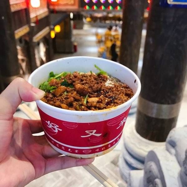 当然,著名的好吃街当然不止这些,先卤后加辣的重庆麻辣串,各式各样的小面,山城小汤圆儿,抄手豆花棒棒鸡应有尽有。满心想吃最辣的口味儿,又有点怕自己hold的朋友也不用担心,小吃街上不缺各种饮品店,买一杯冷饮配着主食一块儿吃,或者来一份刨冰,一碗凉粉也都可以,尽情的感受冰火两重天的快感吧(•̀ᴗ•́)و ̑̑ 。