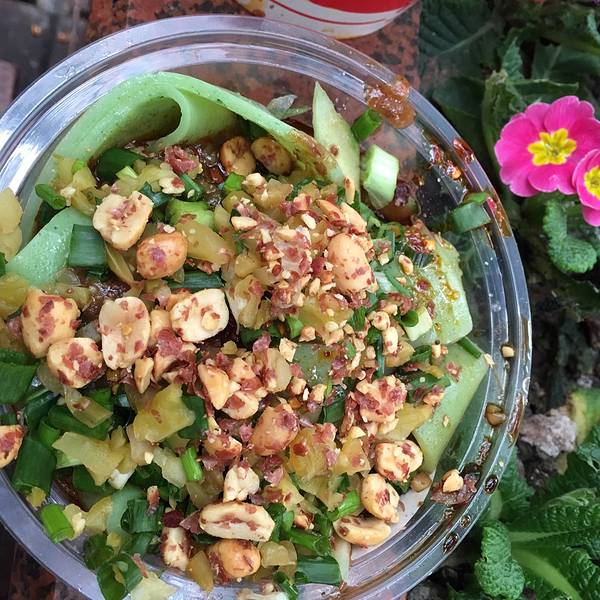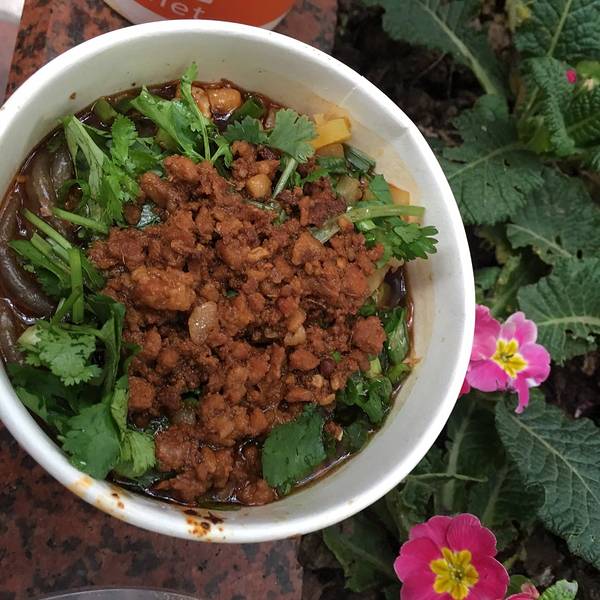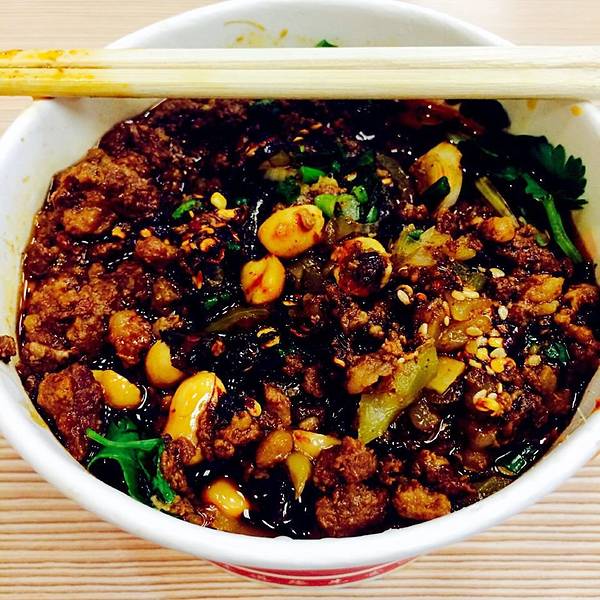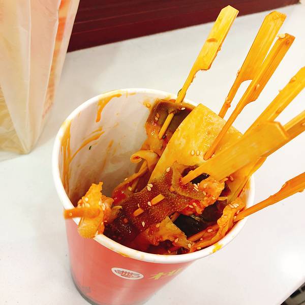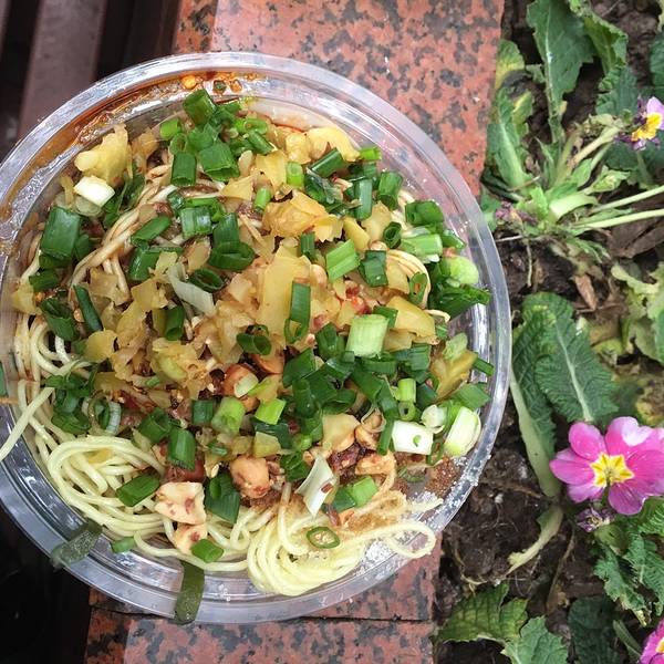 一般排队排到了跟前,就直接给你调好端上来了,如果不太能吃辣的,或者不爱吃葱啊香菜之类的朋友们,记得排到的时候主动跟店家说一声(以前翻点评看到有人说店家没问要什么口味儿最后辣得吃不下去然后给了差评……其实吧来川渝这片儿无辣不欢的地方外出觅食如果知道自己不太能吃辣要主动跟店家提出要求哦,毕竟人家平时做菜根本不需要顾忌这些,但只要你说出来一般都会按你的要求调整的呀)。