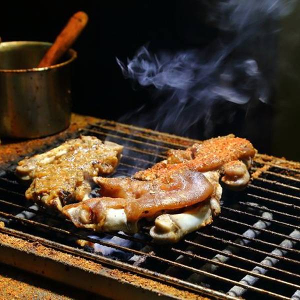 第二天禁不住又吃了一次香辣的,比蒜香还要好吃,反正他家推荐的就是这两个口味,买香辣的当地人非常多哦地点位于八一路好吃街,店铺很好找,黄色的广告牌,写着金榜蹄名。通常早晨10-11点钟就开始营业了,因为好吃街开的较晚,属于夜市,所以不管午餐、晚餐还是夜宵,都是值得推荐的吃食。第一次怕辣,点了两个蒜香的...地点位于八一路好吃街,店铺很好找,黄色的广告牌,写着金榜蹄名。通常早晨10-11点钟就开始营业了,因为好吃街开的较晚,属于夜市,所以不管午餐、晚餐还是夜宵,都是值得推荐的吃食。第一次怕辣,点了两个蒜香的。拿到手之后热乎乎的,当时就忍不住啃了一口,胶原蛋白被发挥的淋漓尽致!!非常软糯的口感,一点也不是想象的那种会筋道,咬不动。非常推荐,而且调味非常好,店家秘制撒的调料,然后刷上蒜泥汁,烤出流油之后撒上香葱出锅,极赞!!!我觉得软糯的原因可能是猪蹄先被煮熟到软嫩了,然后再放到火上烤,才能烤成外焦里嫩吧~第二天禁不住又吃了一次香辣的,比蒜香还要好吃,反正他家推荐的就是这两个口味,买香辣的当地人非常多哦!~因为坐了7个多小时的动车,回到住处也有11点了,我们赶紧洗漱睡觉,准备明天继续逛重庆~~ 展开