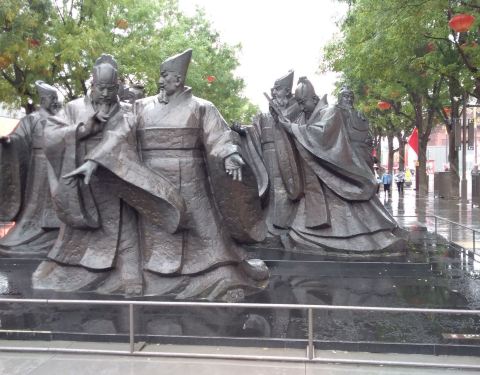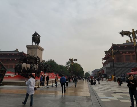 ...大雁塔往南,唐太宗立马远望,威风凛凛的,下边的人像群雕表情是从容自信,非常大气,真正的盛唐气质