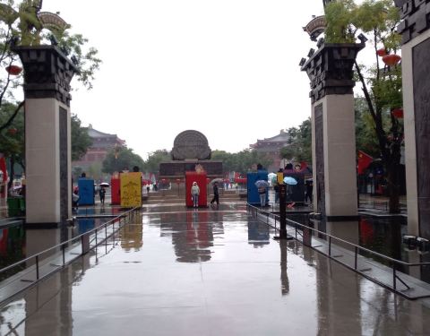 贞观广场位于大雁塔南部,由西安大剧院、音乐厅、曲江美术馆和太平洋影城四大主题建筑组成,也是大唐不夜城的核心。去的交通也方便,可以乘坐242路公交车直达;21路、526路、609路等多趟公交车也会途径附近的站点。这里最大的特色就是将传统文化与现代光学艺术很好地结合在了一起。尤其是在华灯初上时,更是有一种流光溢彩的感觉。建议大家可以在周末的时间,安排半天时间在大雁塔,中午到下午就在大雁塔内参观,晚上可以在大雁塔北广场先看音乐喷泉,然后再到南广场来看看贞观广场的雕塑,既可以回味历史,又可以错开返家的高峰期。沿着中轴线参观,有一条贯穿南北的中央雕塑景观步行街,这里分布着反映大唐盛世帝王生活、历史人物、英雄故事、经典艺术为主题的群雕。最有代表性的当然是贞观纪念碑。