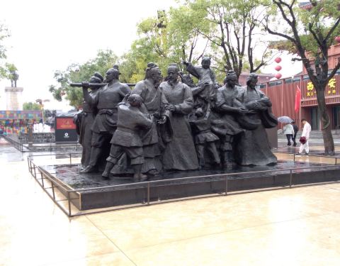 这个广场就在大雁塔往南,唐太宗立马远望,威风凛凛的,下边的人像群雕表情是从容自信,非常大气,真正的盛唐气质。