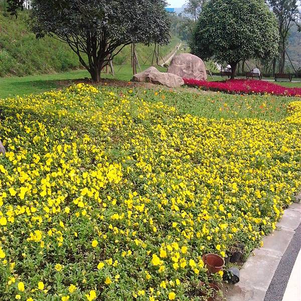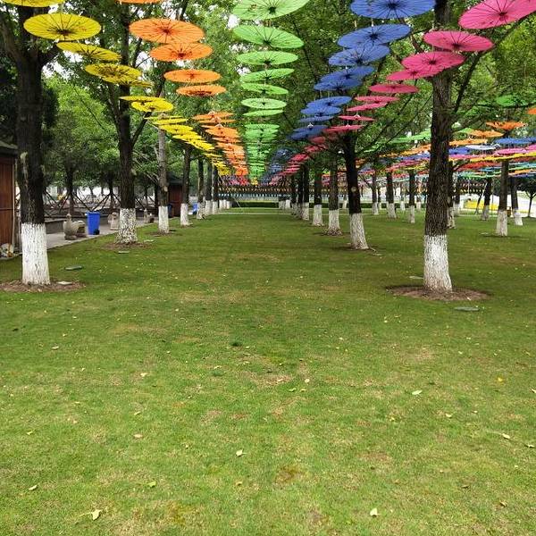 园博园的吉祥物为“山娃”,在景区入口处有一个大大的山娃憨态可掬的在欢迎你,园中其他地方也有山娃的身影,也有卖吉祥物山娃的。园内的景点比较多,不同展园具有其不同的园林风格,你可以边走边欣赏不同地区的特色,由于展园太多,我个人也没有按照一定的路线游览,故没有把不同的园林全部看一遍,而且有些景点看完没记住名字。圆缘园广场以祥云形式的枝叶呈现出一个圆形,因此而得名“圆缘园”吧。如果坐船还可以欣赏了岸边的“青山茅庐景区”,体会游玩在山水之间的美妙感觉。卧龙石景区可以登高望远,整个山坡坡度小而平坦。园中还有很多卖小饰品以及具有特色的展示品,如扬州烟雨中的遮挡的美丽伞,香包和精美的手表等用来穿戴的装饰品。园中出口的道路两边种满了鲜花,不同颜色的花竞相争艳,绝对是一道吸引眼球的美景。