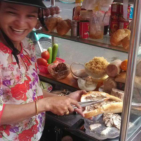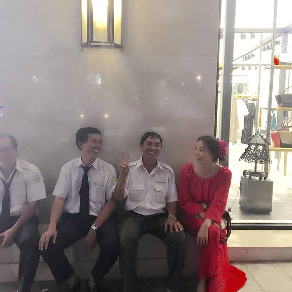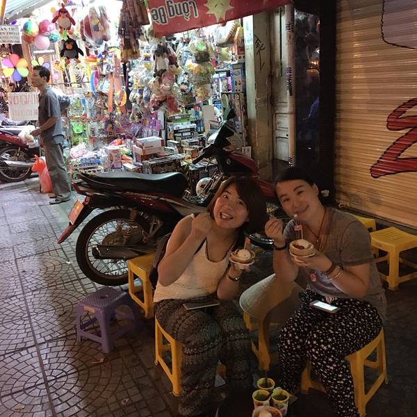 出机场搭109号公交车直达范五老街, 在车上遇到一对辣眼情侣,男的是白人很高挺帅的,女的是越南的,男的一路上又是摸头发又是抱抱亲亲的,这些都可以接受阿没问题,可能我比较外协女生比男生胖一倍,满脸都是痘阿什么的好像看到彭于晏在亲凤姐的感觉哎呀不知道反正好辣好辣眼睛的。。。后来到其它地方耍看到更多类似的cp简直血槽要空hhhhhh 公交车上遇到一个台湾男生,他给推荐了家盲人餐厅《Noir》,有欧式/亚洲/越南等多国料理,最与众不同的是这家餐厅会在黑暗中进行,给客人戴上眼罩用餐,用味觉体会餐桌上的美食,貌似还在胡志明排名第一,你们可以去试试哦!!!赶了两趟飞机肚子瘪瘪的,在范五老街头吃了传闻赞到不行的米粉,大概因为是潮汕人所以完全没被惊艳到啊,料倒是蛮足的,一份3w盾