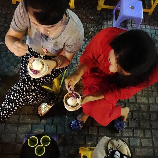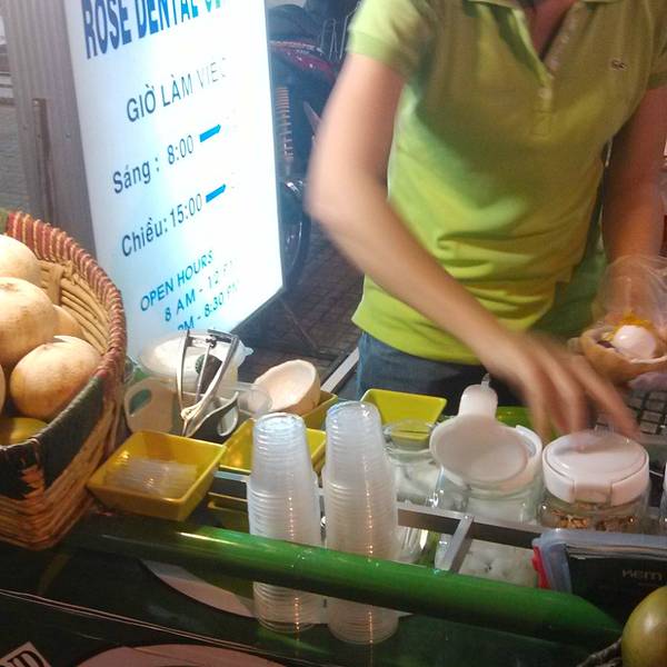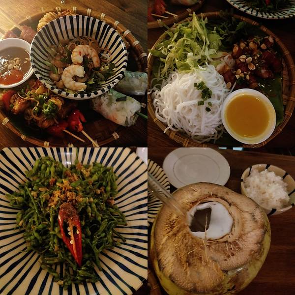 便宜又好喝的椰子~。伴随我们一路的河粉 还是很好吃的。热闹的街景 惬意的街边咖啡店 美味的越南菜