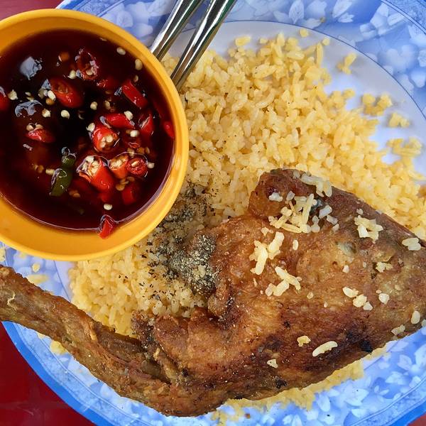 差不多7点时候肚子饿了出来溜达看到一家卖炸鸡腿饭然后买了一个吃,结账时候老板说15块钱,妈的怎么那么贵,网上的人说路边的鸡腿饭才6块钱一个的,看来她是收多我的钱了,发现越南本地人好喜欢坑游客的钱。。。...