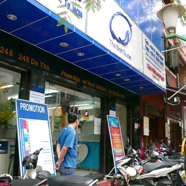 酒店窗口看出去的景色。 边上有个很大规模的花市。 路边小贩。 我是通过淘宝的一个店家订的,他不收手续费,买好之后传给我了一张凭证,我拿着凭证和护照到柜台换主票,拿好主票,在出发前半小时再来换车票和行李牌。之后的一程美奈到大叻也是在这里一起换主票的,车票和行李牌在美奈的新咖啡换取。