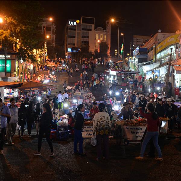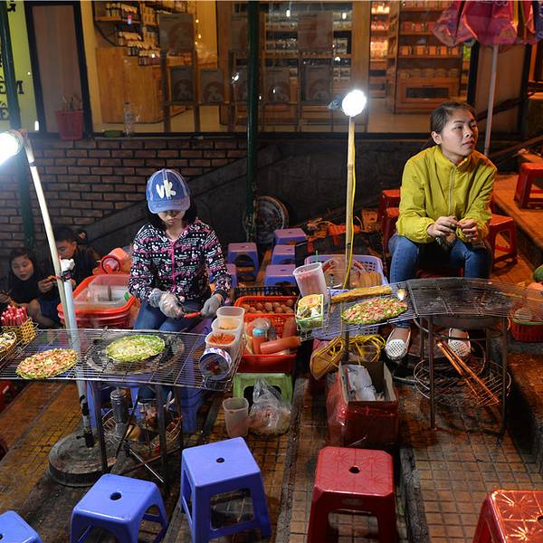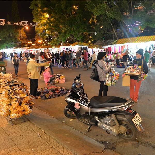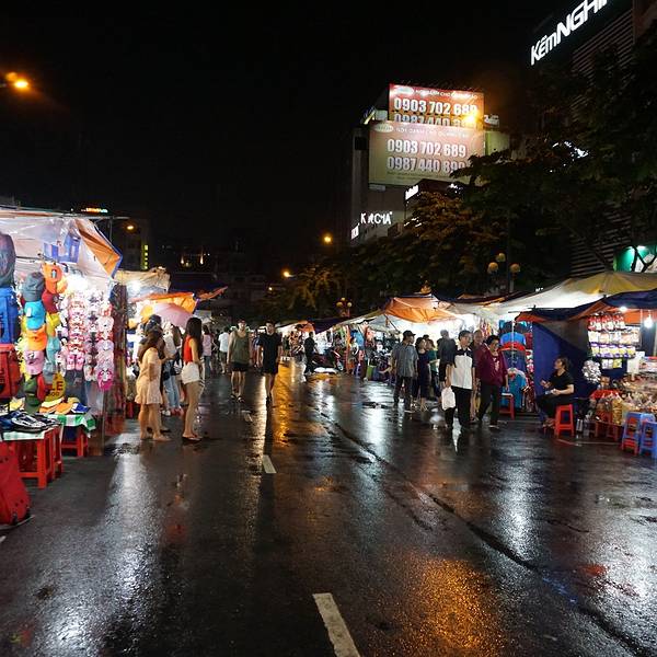 19:00开始,几条小路上会支起棚架继续白天的市场和小吃摊,但有时因为管制而取消。