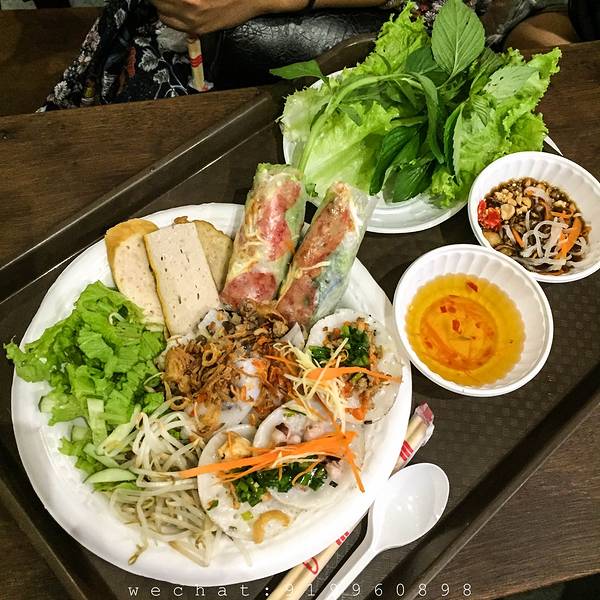 金骆驼 还给姑娘看一个本子很多中国人留言说这个司机很好,然后跟姑娘说她去胡志明逛景点,100千盾,姑娘...滨城市场旁边有个美食夜市,在这里解决了晚餐,点了份当地特色的粉糕春卷套餐,85000/份,当地人蛮喜欢的但个人觉得味道很一般没啥特别的咧,口味偏淡这家比较有越南特色的店,都是用米浆搅拌后蒸熟再淋上自己调...滨城市场旁边有个美食夜市,在这里解决了晚餐,点了份当地特色的粉糕春卷套餐,85000/份,当地人蛮喜欢的但个人觉得味道很一般没啥特别的咧,口味偏淡这家比较有越南特色的店,都是用米浆搅拌后蒸熟再淋上自己调好的酱料和配菜,口味反而很像我们潮州的水粿,做法和看起来也是非常相似的!这家店相比其它店生意爆好呢,不过光顾的多半是游客,可能都跟我们有相同心理想尝试当地特色第一次接触越南菜,咳咳我来发表下我的意见,我觉得最好吃的居然是。。。旁边那两块肉还有那边那盒青菜,哦辣椒也算我不是在黑越南菜,是这家坐的太普通,后面还是会推荐很多正宗味道超正的餐厅哈~~~继续走十月正好是越南的雨季,吃完饭就下起阵雨,找了家饮品店喝东西,闲的把在泰国编的头绳给解开了。同时也有好多朋友得知我在越南给我分享很多小tips。