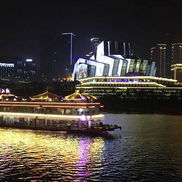 沿滨江路大概5分钟到达码头。市区内单行道多自驾车朋友在重庆市区最好乘座出租车。朝天门广场和码头都有停车场。