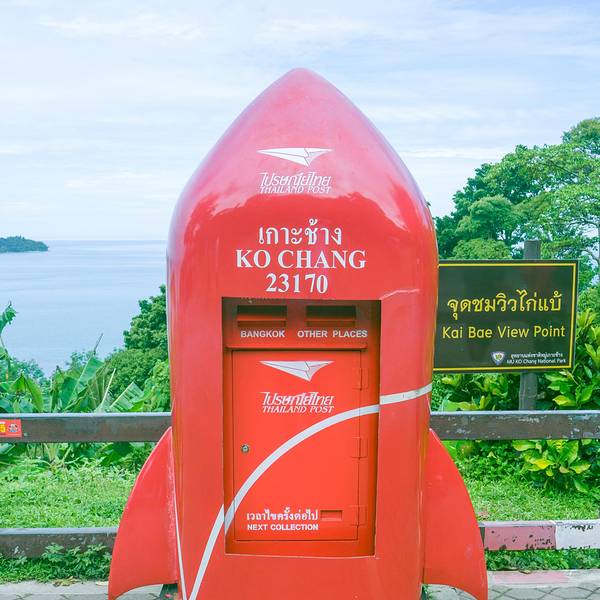 和游览完瀑布的老夫妻汇合后去吃午餐,午餐是包含在一日游当中的, 泰国 最常见的炒饭,除了炒饭还有时令水果、水。 下面几站的瀑布和大象园我们四个都表示没有兴趣,于是直接出发到卡贝观景台,这里的红色邮筒之前在网上看过图片就很喜欢了,幸运的是来到这里时天空透出几分蓝来,红色的邮筒在蓝色天空的映照下显得格外耀眼。 海面平静,站在这里静享此时只属于我们的海风。