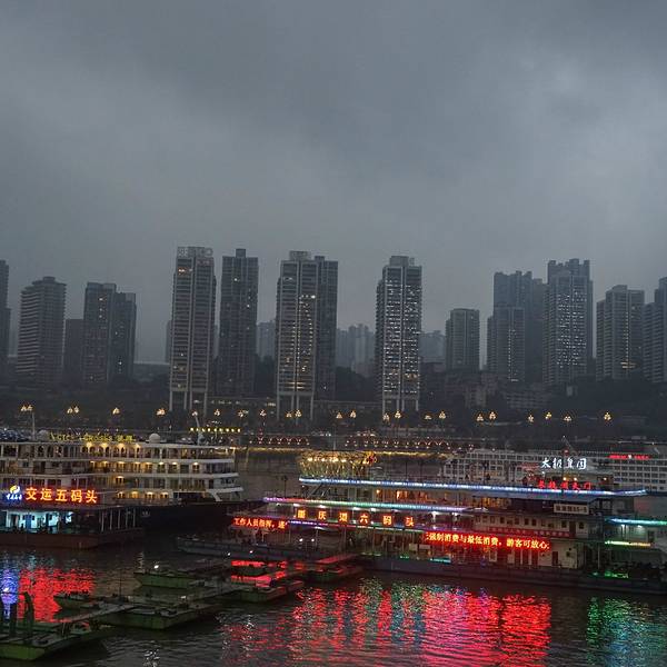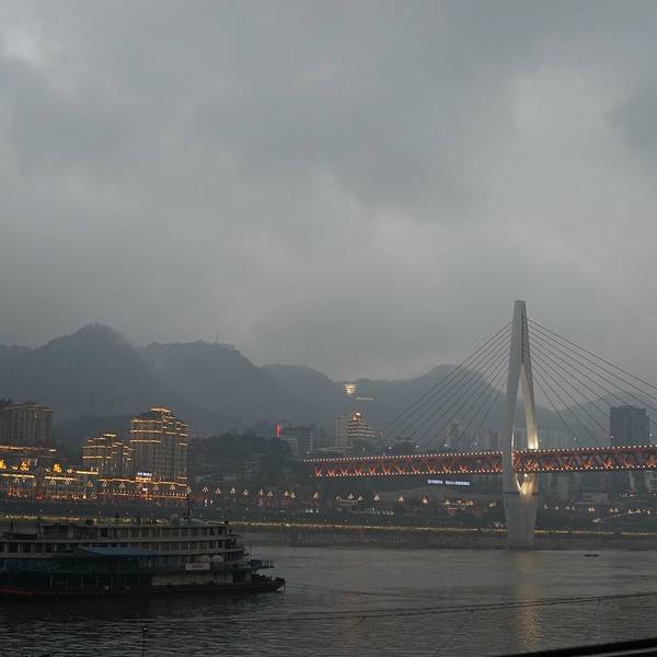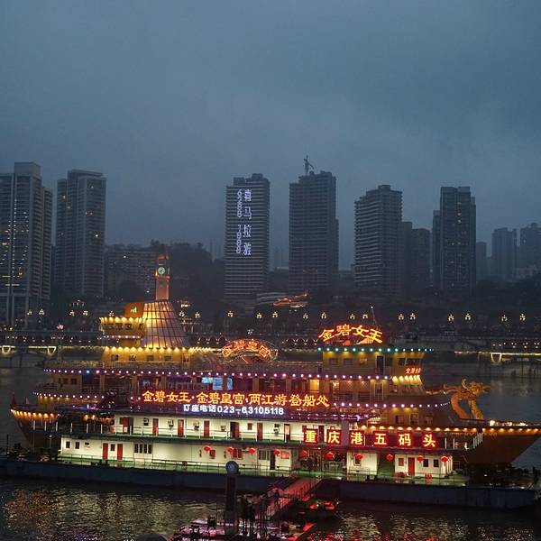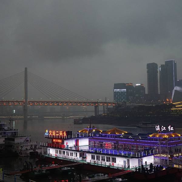 晚上再来看看夜景朝天门是嘉陵江与长江干流的两江汇合处,是老重庆最著名的地标之一,因为山城的陡峭石阶,催生了“棒棒”这种代人挑货的挑夫行业,一根扁担谋生活啊,如今早已成为历史。晚上再来看看夜景。