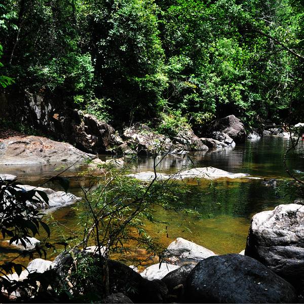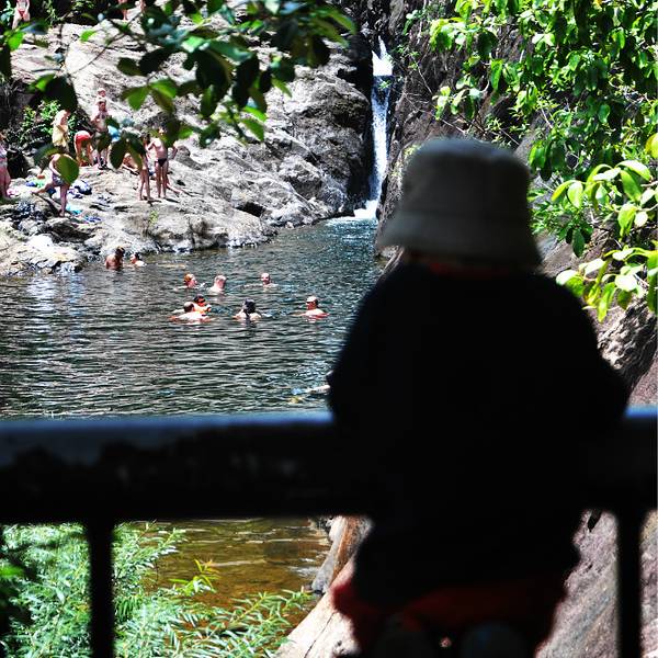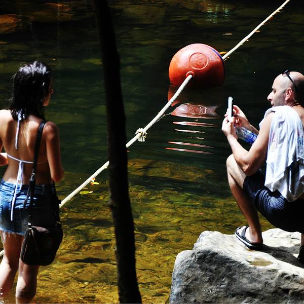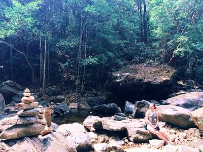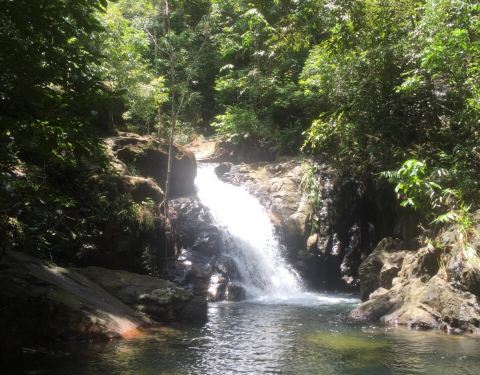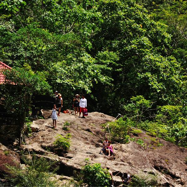 山谷清幽,岩壁湿滑,游人可尽情享受山涧的清凉。 人与自然相和谐就是这样的吧快到景区外时,雨停了,太阳出来了。 景区门口到瀑布,一路都是原始道路,穿行在热带雨林中,溯流而上。 看得出当地人对山林河流的崇敬,瀑布雨林提供淡水和食物,养育着岛上的生灵。山间透着欣欣向荣的幽静,雨...快到景区外时,雨停了,太阳出来了。 景区门口到瀑布,一路都是原始道路,穿行在热带雨林中,溯流而上。 看得出当地人对山林河流的崇敬,瀑布雨林提供淡水和食物,养育着岛上的生灵。山间透着欣欣向荣的幽静,雨林神秘而神圣,身处其中,竟是不敢随意喧闹。 山谷清幽,岩壁湿滑,游人可尽情享受山涧的清凉。水花四溅,欢声笑语一圈一圈回荡在空气里。 野生的鱼儿充满着好奇心,无畏的畅游于满是人的溪水中,把脚伸进水里,它们会自动聚集过来,探究这个突然闯入的生物,并悄悄轻吻你的脚底。 人与自然相和谐就是这样的吧。 展开